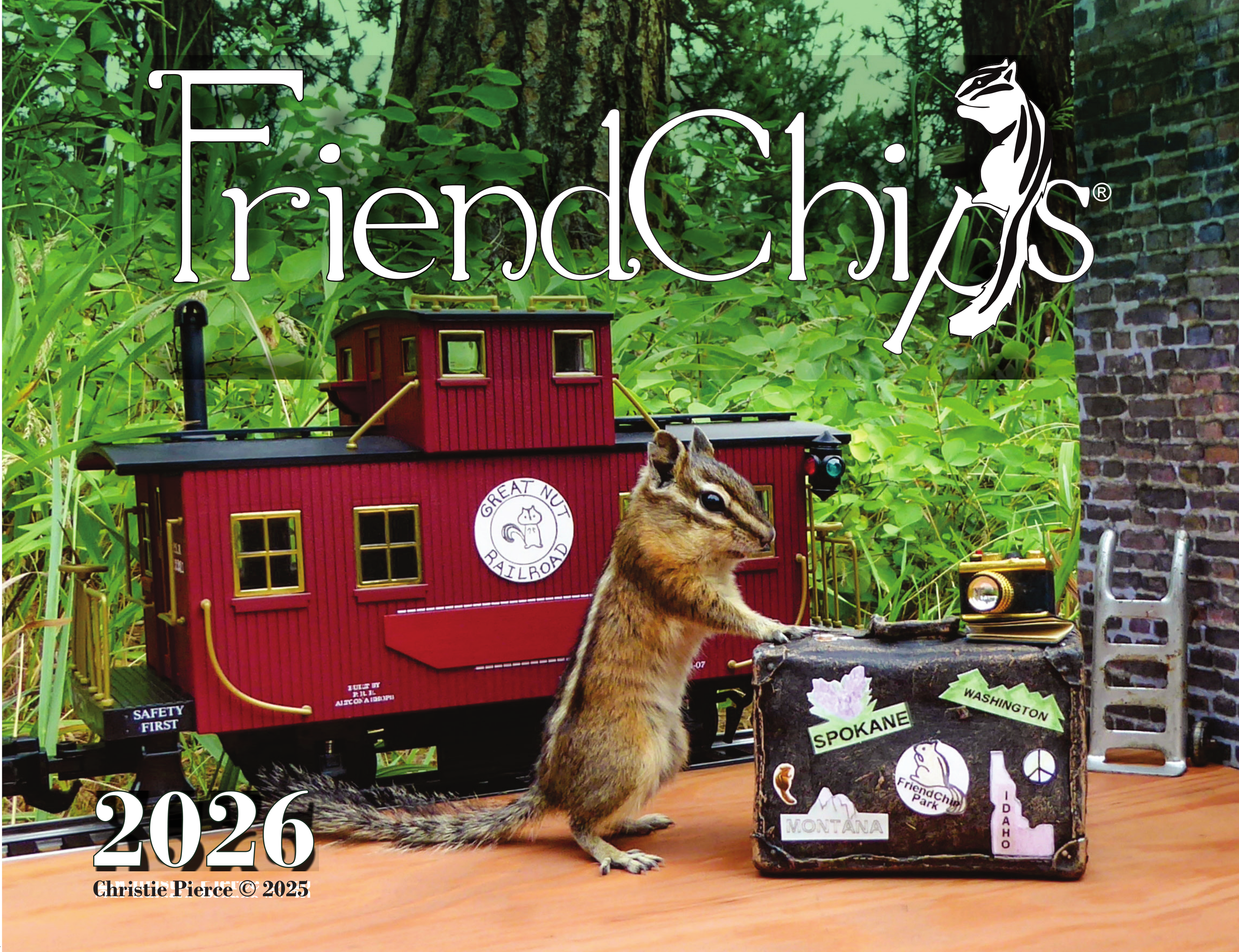 In 2012 Christie took her first photo of a chipmunk making it appear as though he was playing cards. That photo, and the hundreds that have followed, would become the joyful adventure of FriendChips. Christie and her husband, Paul, design and build miniature sets of every day events. She lures the wild chipmunks that live around their patio into the scene, capturing these images. Aside from removing small bits of seed or adding graphics, these images are not digitally altered. As Christie says, "Every picture tells a story, and there's a story behind every picture!" Only natural seeds are used for bait, all her actors are willing participants, and no one is ever harmed.